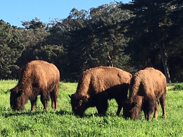 Many visitors and some locals delight at seeing a small herd of buffalo in Golden Gate Park. Seasoned San Franciscans and knowledgable visitors know the truth: the large, lumbering animals grazing in the enclosed meadow along John F. Kennedy Drive just west of Spreckels Lake aren’t buffalo. They are American bison.