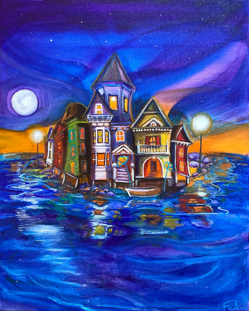 Painter Nathalie Fabri, 50, lived all over the world while her father worked for the United Nations. She chose to plant roots in San Francisco 23 years ago, largely because of the evocative 1970s French song, “La Maison Bleue,” by Maxime Le Forestier, about a house in the Castro.