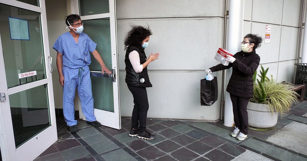 When Tina Cen-Camarao walked up the stairs to the Kaiser Permanente San Francisco Medical Center with an orange plastic bag full of surgical and N95 masks, security seemed confused and started asking questions.