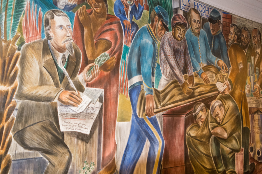 Will it happen this time? The friends of the Zakheim murals say no, that the murals’ demolition is very much avoidable. They’ve said no in newspaper articles across the country, on the air at KGO Radio 810AM with John Rothmann, and even on stickers all around the UCSF campus. And they mean it. They won’t be going along quietly. And some lawyers are going to be busy for the next year(s). Because while we may argue about the best way to portray our country’s difficult history with race and representation, public art like this does belongs to all of us – giving us the opportunity to celebrate the overcomers like Biddy Mason, and to challenge us to find ways to talk about things like Indians and missions, quacks and snake oil salesmen – which are all in “The History of Medicine in California.”