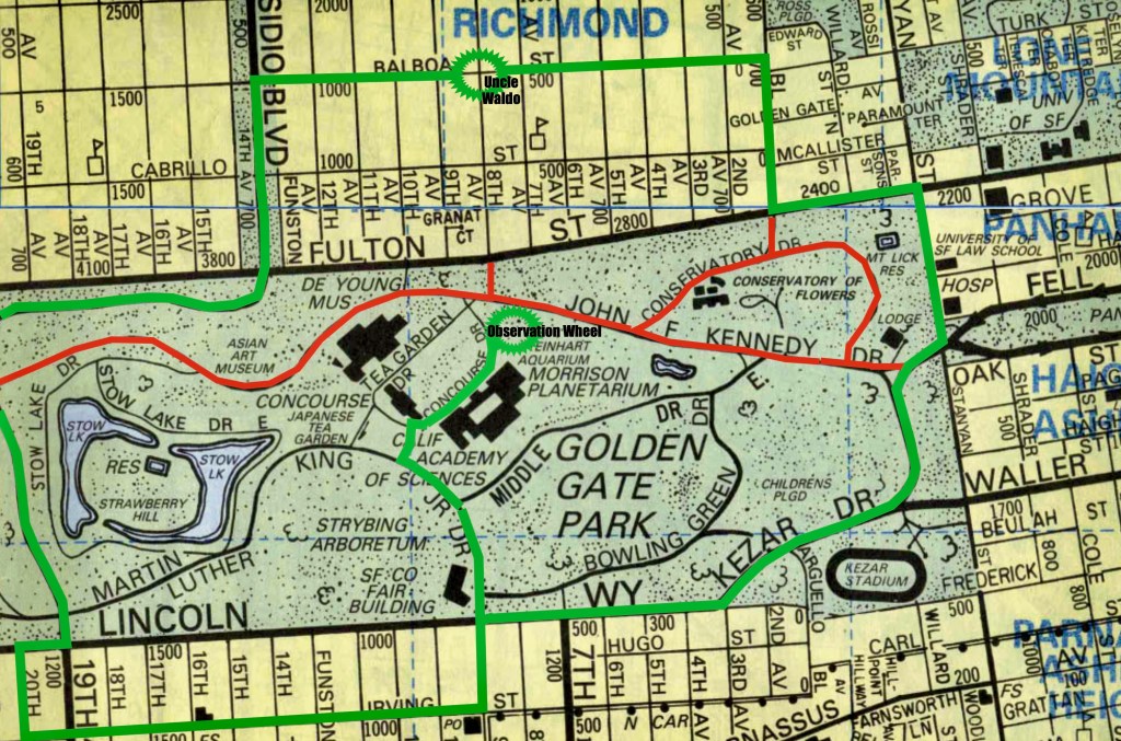 I have enclosed a map showing the routes (in green) someone in the Inner Richmond would need to drive to drop someone off at the Music Concourse.