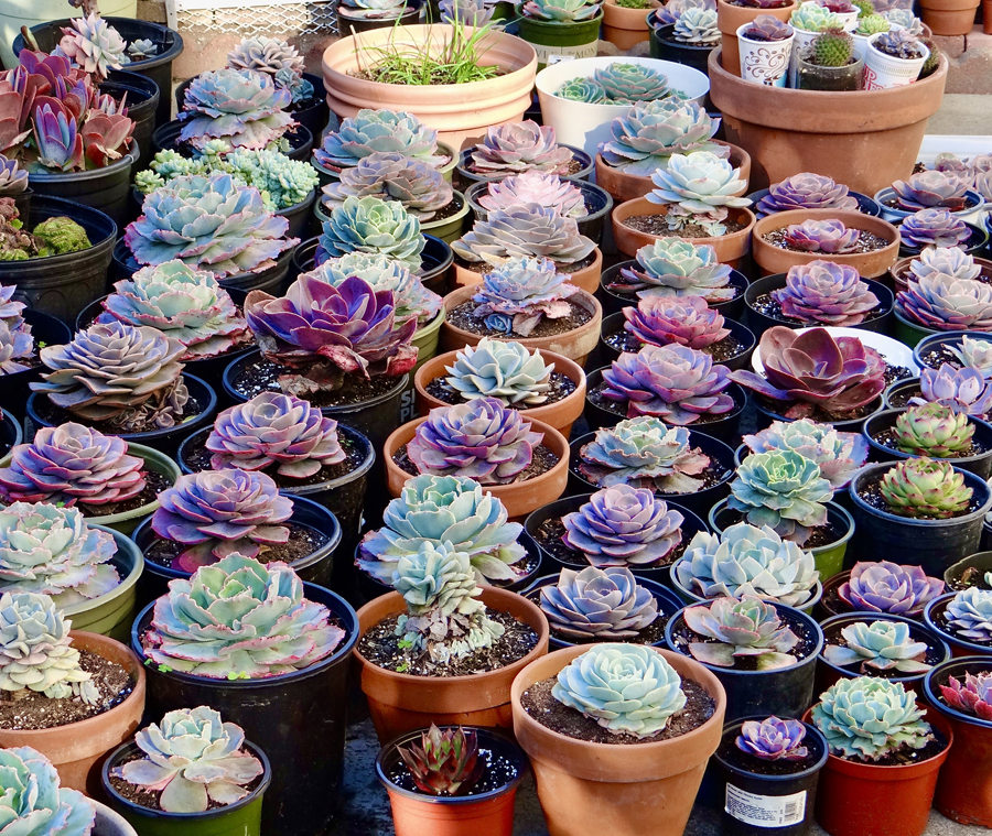 Chan shares tips and succulents with anyone who asks. His back yard is filled with hundreds of pots holding a wide variety of succulents that he swaps out with the ones that look tired after starring in the main show along the sidewalk.