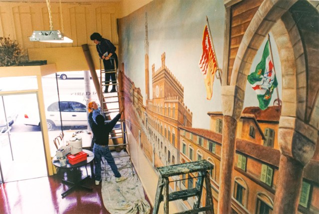 A proposal for a mural was produced by Jennifer and Leo based on their visits to Italy and, in particular, Siena. The client approved and their work began.