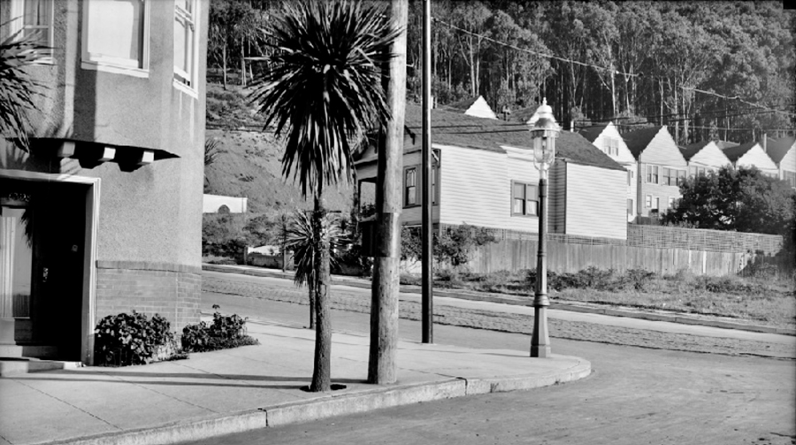 This photo of the corner of Fifth and Parnassus avenues was taken by United Railroads (predecessor of Market Street Railway and Muni) staff photographer John Henry Mentz on Oct. 30, 1919. All of the homes seen across the street were demolished to make way for UCSF, but the large apartment building on the left still stands. Two similar photos note it as the home of Dr. August C. Bothe, at the time, chair of the College of Physicians and Surgeons. Photo courtesy of a private collector/Western Neighborhoods Project/OpenSFHistory.