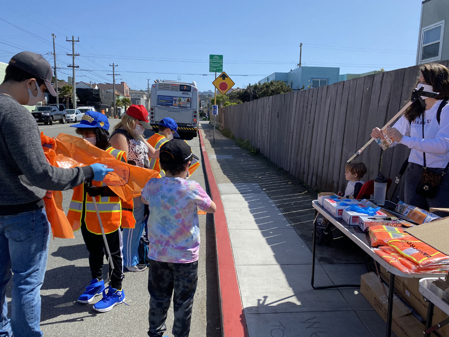 On Sunday, March 21, more than 20 adults and six children showed up to help clean the streets. They were able to cover a lot of ground cleaning Pacheco, Ortega, and Noriega streets from Great Highway to 38th Avenue, including cleaning around the West Sunset Park and the Ortega Branch Library and playground.