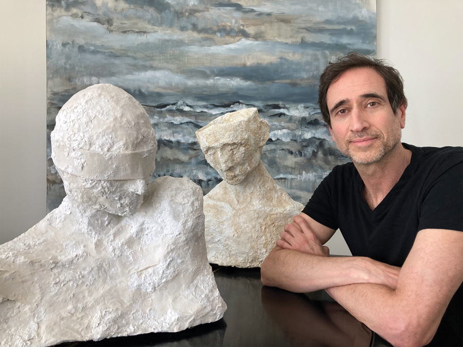 “For some reason, I now find sculpting with papier-mâché, plaster, and wood less mentally and physically demanding than painting,” he said. “Since seascapes have dominated my work for the past five years, it feels natural to build upon the ocean as a subject.”
