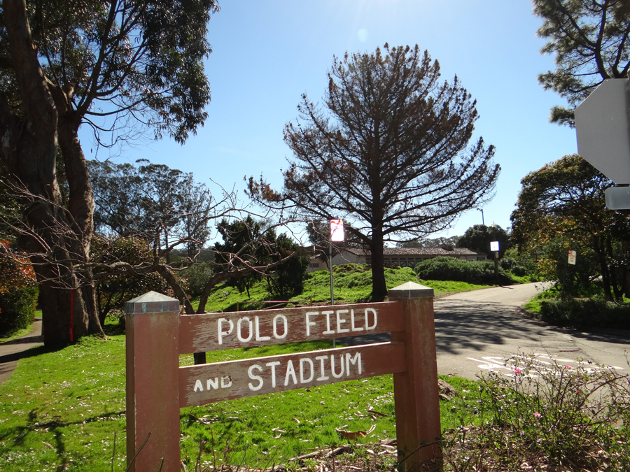The Polo Field is south of Spreckels Lake and east of the Chain of Lakes. Where JFK Drive approaches the south edge of Spreckels Lake is a sign for the Polo Field’s northern entrance. Its southern entrance is accessible from Middle West Drive, several hundred feet east of Middle West Drive’s intersection with MLK Drive.