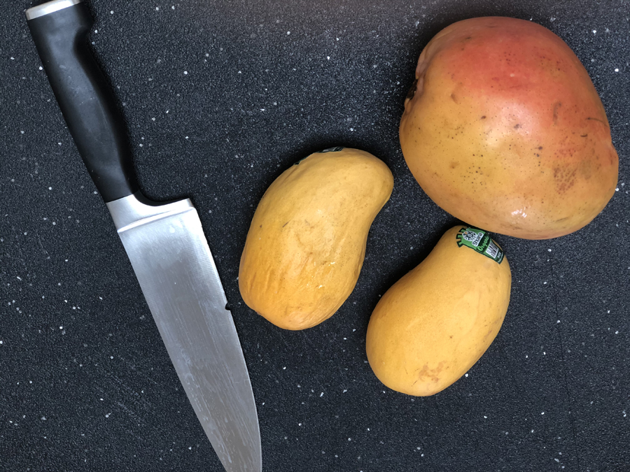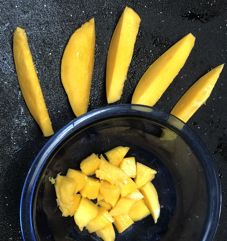 2 large or 4 small very ripe mangoes to obtain about 4 cups when cubes