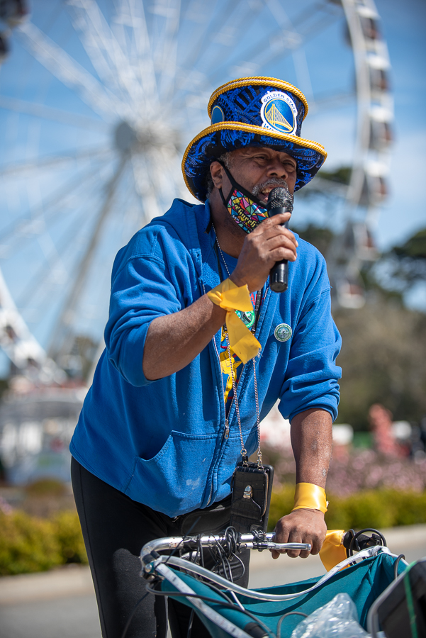 David Miles, founder of the Church of 8 Wheels and the “Godfather of Skate,” spoke to the crowd about his 42-year fight to keep JFK Drive open to people. “It’s kinda a selfish thing,” he said. “I just want to come out to the park and have a great time, every time I come out. I want to have fun with my friends and I want to have fun with my family. I want to share that same fantastic energy that I discovered when I first found out that this road was closed to traffic.”