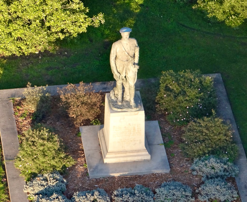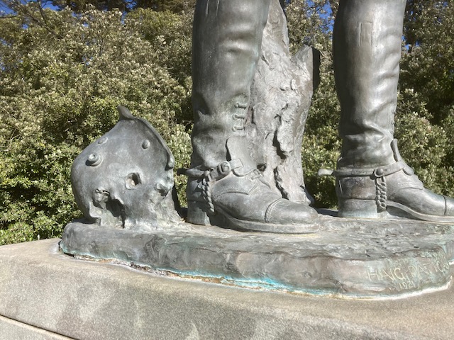 His statue on the eastern end of the Music Concourse is eight-feet-tall and stands atop a five-foot-tall base, according to an article by Executive Director Nicole Meldahl of the Western Neighborhoods Project.