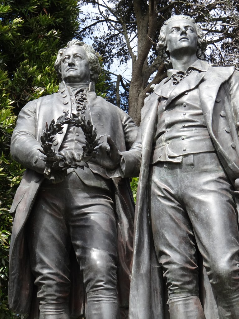 The San Francisco monument is a copy of a 1857 original sculpture by Ernst Rietschel in Weimar, the German city where Johann Wolfgang von Goethe (1749-1832) and Friedrich von Schiller (1759-1805) famously collaborated. For example, William Jones, a writer for the Schiller Institute’s Fidelio Magazine, wrote that Goethe went over the meter and staging of the play “Wallenstein” while Schiller composed it.
