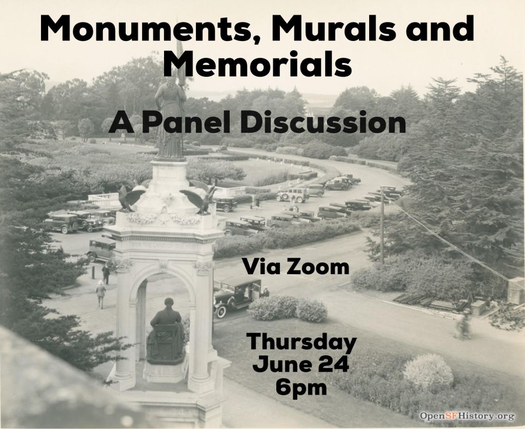 In light of this, we invite you to a panel discussion highlighting the exceptional work of all these artists. Join us for “Monuments, Murals and Memorials” moderated by Executive Director Nicole Meldahl of Western Neighborhoods Project on Thursday, June 24, 2021 at 6:00pm via Zoom as she speaks with Cheyenne Concepcion, Ben Davis, Anna Lisa Escobedo, Dana King and Ben Wood about their current projects and the bigger picture of why their work is important, what it means to San Francisco, and where we can go from here.