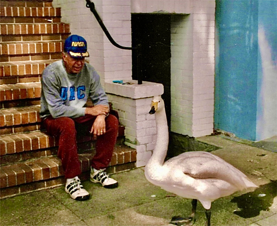 But without a doubt, it’s the story of Myrtle the swan that will be most remembered. Before Mountain Lake was dredged, a pair of swans lived there. One was quiet and reserved, the other, named Myrtle, was everything but. She fell in love with Chuck while watching him play tennis, and made sure everyone knew it. She would wait atop the hill in the playground for Chuck to drink his morning coffee on the porch, honking loudly and flailing her wings to greet him. That was our cue that we only had a few minutes, rushing to the car before she managed to waddle down the hill and try to get in with us. If she got there first, we had to guide her back to the lake so she didn’t follow the car. If any of my Alamo Elementary teachers are reading this, that really was why I was late. We’d get random calls from businesses and neighbors on Clement Street telling us to “come get her” when she’d taken herself on a field trip. She did like her stepson (me). The neighbors built a pen to keep her from wandering around at night, which I herded her into at sundown. Once, a newly deputized Presidio police officer radioed that a “juvenile was harassing the wildlife.” Like the Alamo teachers, he didn’t believe my story. Naturally, Myrtle was not fond of Helen, her competition. If the disdain was reciprocal, Helen never showed it.