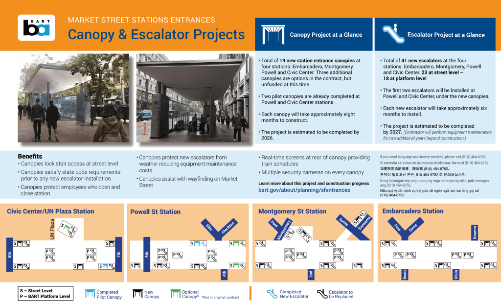 On January 23, 2020, the BART Board of Directors approved a contract to construct 22 canopies over entrances at BART stations along Market Street. The contract calls for the removal of 32 trees on Market St. Here are some excerpts from recent Public Works Order No. 205249: