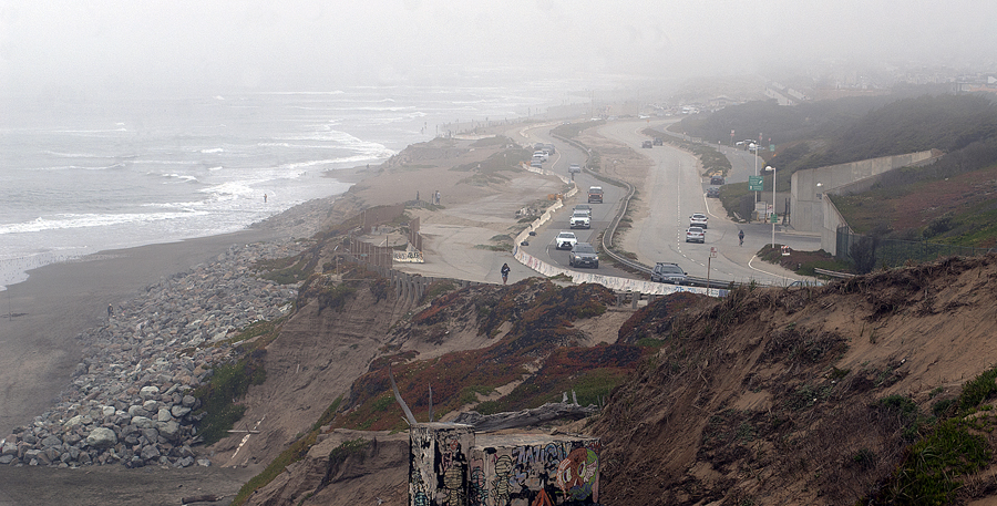 The immediate concern, however, is the Lake Merced sewage tunnel, a 14-foot-diameter pipeline that carries sewage water from the residences of the Lake Merced area to the plant, where it gets treated, cleaned up and then released through another pipe going into the ocean at about four miles out to sea. The Lake Merced tunnel goes under the Great Highway along Ocean Beach, but well below the beach level. It is also the most seaward component of that facility.