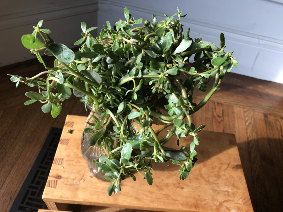 I was thrilled to rediscover purslane at a small market in the Sunset that carries ethnic food items. I had also witnessed these leafy greens sold in outdoor markets in Mexico. Apparently, purslane grows wild almost everywhere in the world as it does not need much care or a good soil.