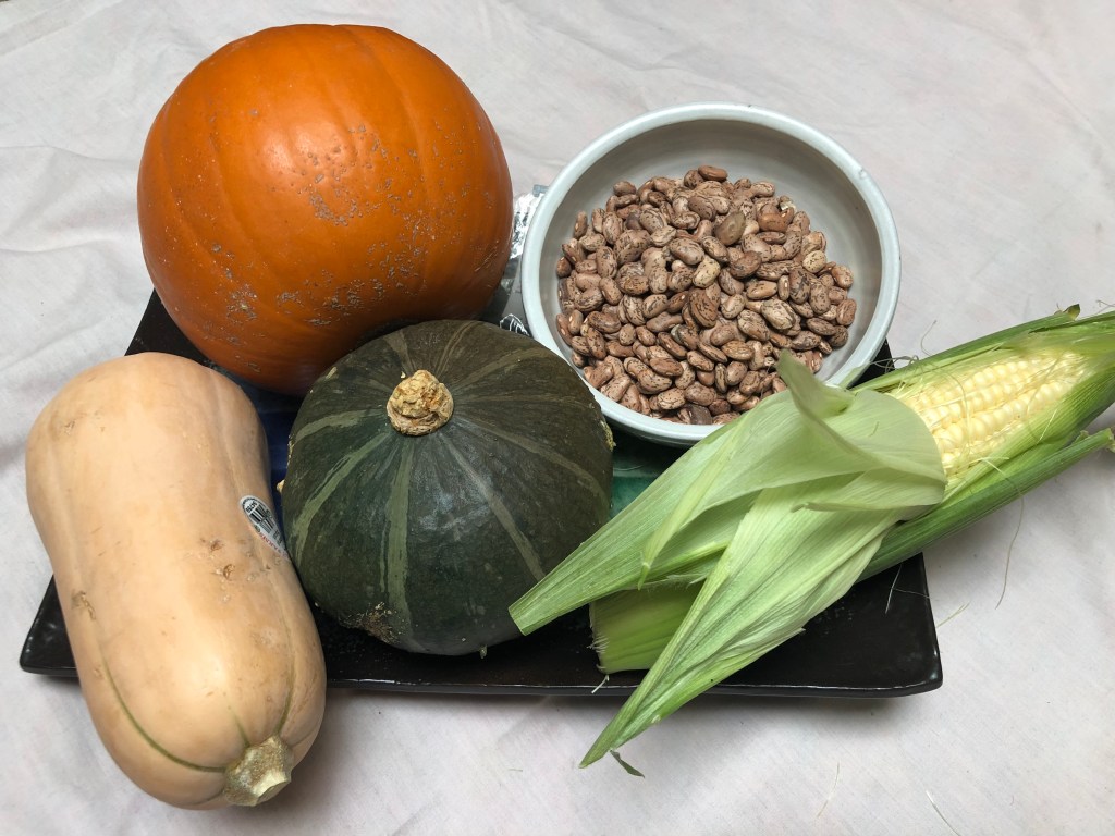 In addition to being grown interdependently, corn, beans, and squash complement one another nutritionally as well. Corn provides complex carbohydrates, beans provide protein, and the squash provides vitamin A and potassium.