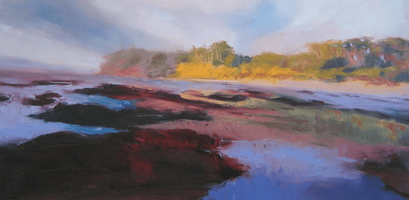 “Because they don’t dry quickly, they can be moved around as the painting evolves – I like that kind of freedom,” he said. “When applied with minimal strokes, whether by brush or palette knife, they mix in unique ways.” He said he loves their richness and vibrance.