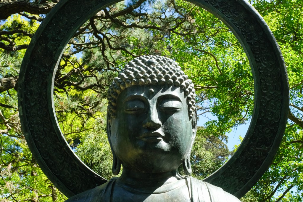 The statue of Buddha in Golden Gate Park depicts the founder of the Buddhist religion, who developed a following while teaching and walking around what is modern-day Nepal and north India roughly 2500 years ago.