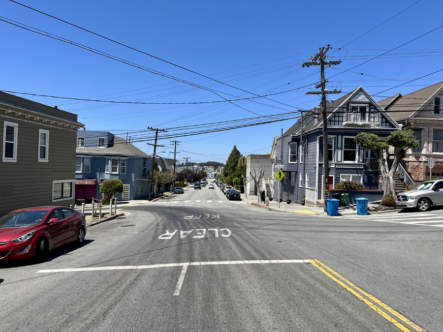 Above: A similar photo looking north on Stanyan at McAllister. Photo taken June 21, 2022, 95 years later. Stanyan now ends at Geary Boulevard.