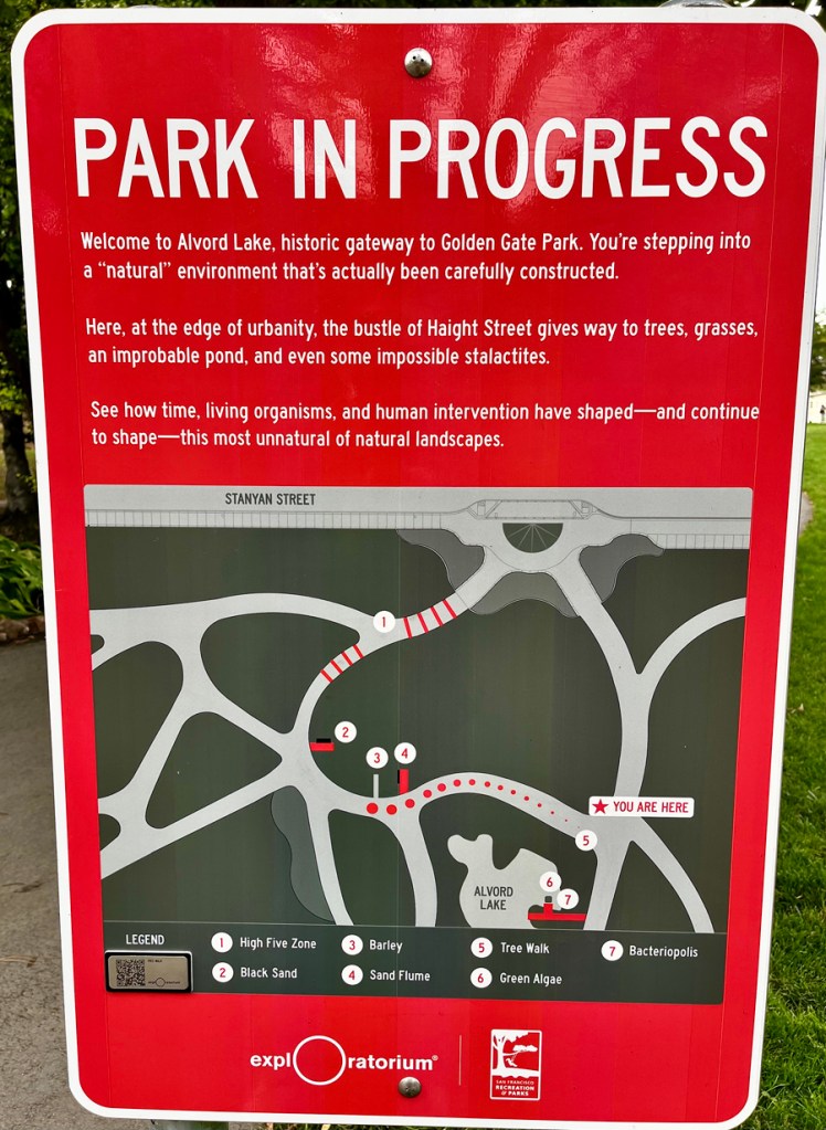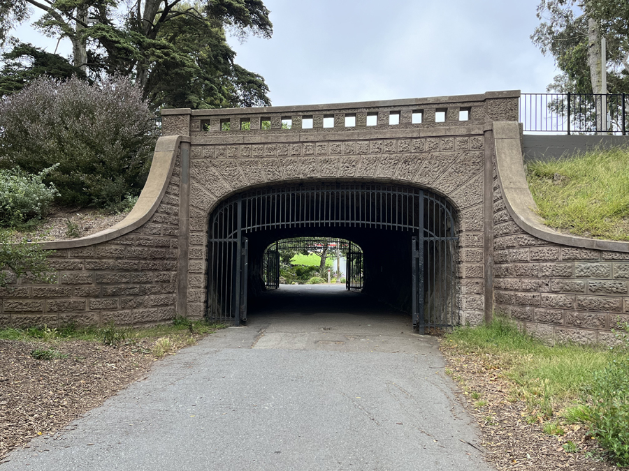 The president of the American Society of Civil Engineers, Jack McMinn, and national director Lauress L. Wise, presented a plaque designating Alvord Lake Bridge as a National Civil Engineering Landmark to San Francisco Supervisor Terry Francois on July 18, 1970, according to the San Francisco Examiner. The plaque is above the pedestrian tunnel’s west entrance. Near the tunnel is the work of the Stanyan Edge Project completed in fall 2020 which gave the Haight Street entrance to the Park more accessible sidewalks and landscaping with funding from the Clean and Safe Neighborhood Parks Bond approved by San Francisco voters in 2012.
