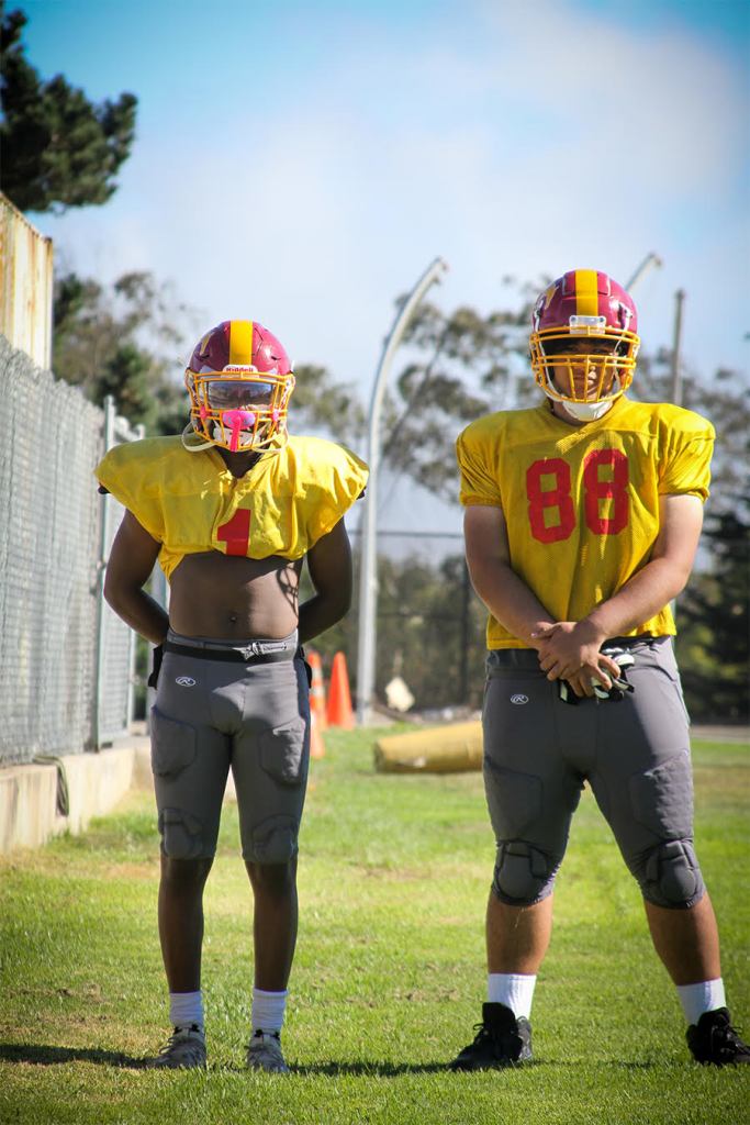 As practice begins, the impact the two student-athletes have had on their team is evident. Tato – standing at 6 feet 2 inches and weighing 290 pounds – distracts the quarterback with size and stance. Meanwhile, Underwood locks in on the wide receiver and almost intercepts the pass. With his sharp play-reading ability and athleticism, it is no wonder how he got a pick-six (an interception returned for a touchdown) versus El Camino last year. Together they are a force to be reckoned with.
