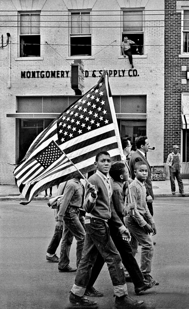 His focus turned to the civilians along the route because he thought about how they were who the march was for – the ones who hadn’t been able to vote, those who would feel the effects, whatever they would be, of the protests. These images captured families picnicking, all turned towards the march in front of them, youth with painted faces, and interracial couples holding hands with courage given to them by the march (and National Guard protection). Interracial marriage was illegal at the time. It was a 1967 ruling by the U.S. Supreme Court, Loving v. Virginia, that decreed all state miscegenation laws unconstitutional.