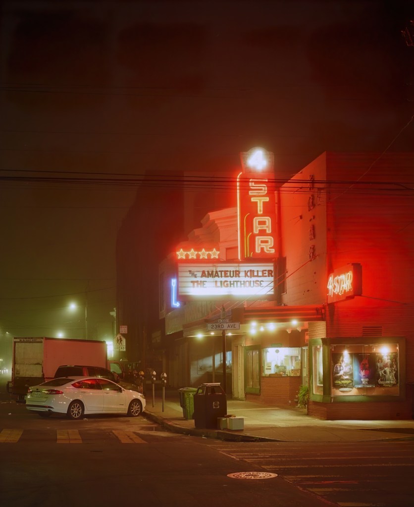 “I just go through life kind of sifting through everything – the good, the bad, the awkward, the hilarious – and just curate that as part of my life,” he said. Ordinary things like an empty laundromat, vehicles parked on the street, or an exterior shot of a local shop are some of the things he focuses on when exploring the streets with camera in hand. One particular photo of the 4 Star Theater he captured at night in the midst of thick fog made the picture so much more dramatic.