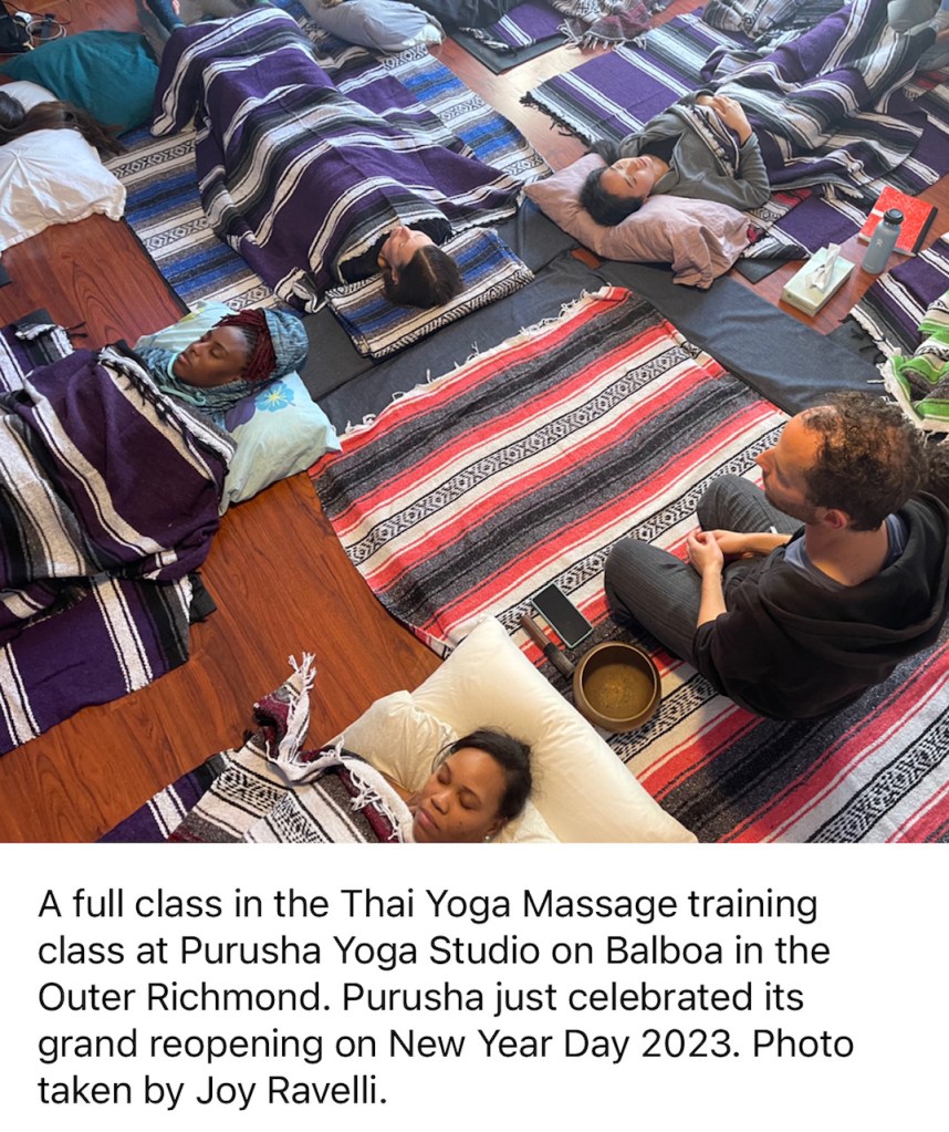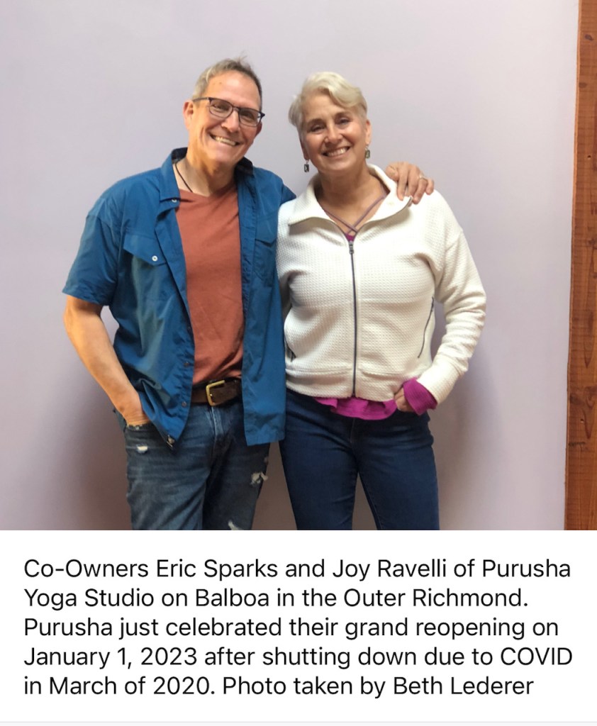 The studio reopened on New Year’s Day, 2023, at the same location on Balboa between 38th and 39th avenues bringing smiles, relief and happiness to many former students and teachers who are part of the Purusha community.