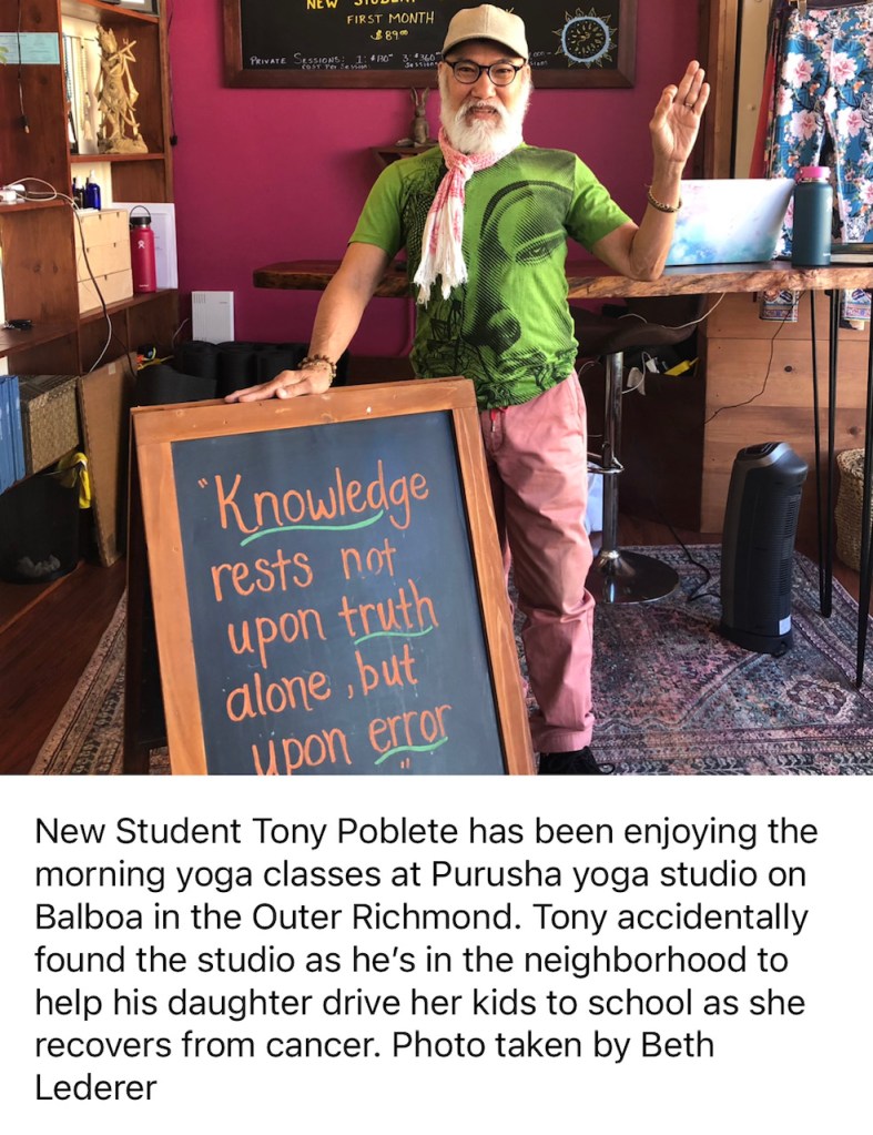 Purusha is a holistic yoga studio and yoga training school on the Balboa Street shopping corridor in the Outer Richmond. Purusha closed in March 2020 when the COVID-19 shelter-in-place order was issued. To respond, the teachers immediately pivoted to teaching online.