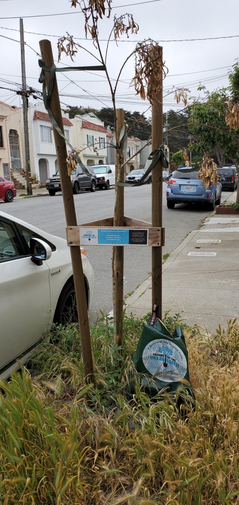 Eleven FUF trees planted a month ago on 22nd Ave. between Geary and Anza are turning into kindling. Most are dying due to lack of City & FUF watering them. I was so excited when the planting occurred, now disgusted. As an avid gardener, I’m watching these parched trees die before my eyes. None are on the property where I live. Such a waste of money, and utter lack of care.