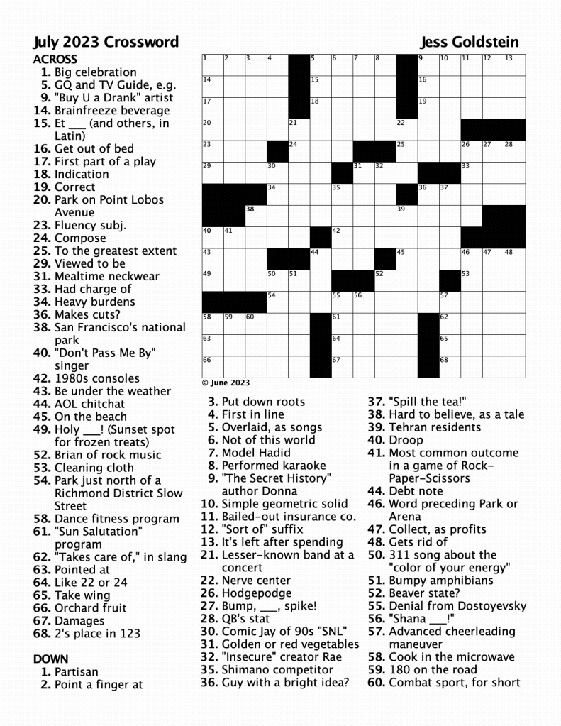 Tagged as: #13, 2023, crossword puzzle, jess goldstein, july, Richmond District, Richmond Review