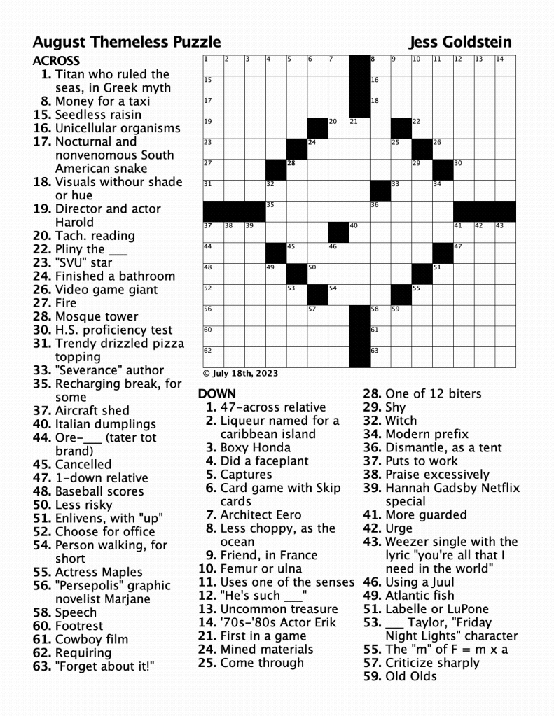 Tagged as: crossword, crossword puzzle, jess goldstein, Richmond District, Richmond Review