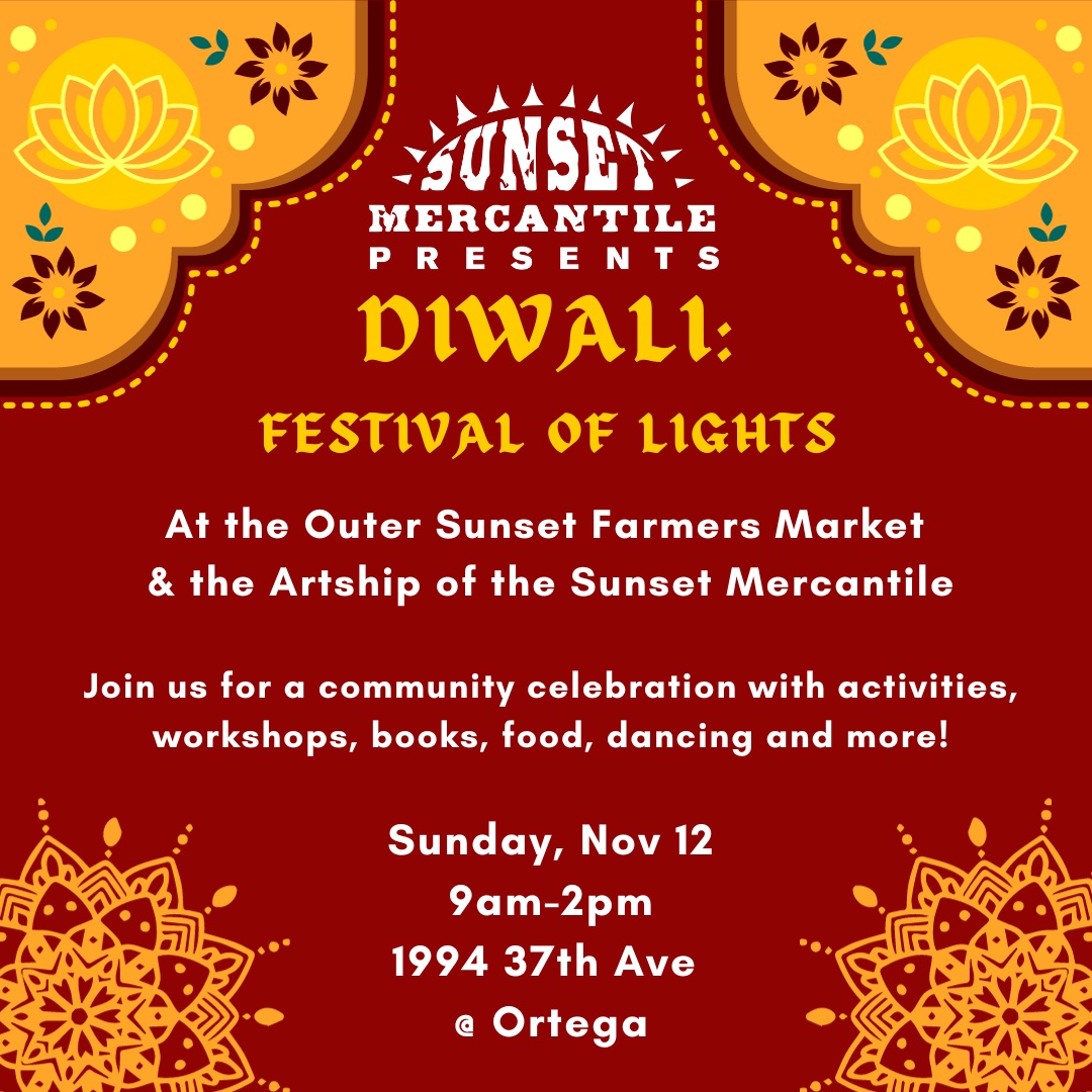 Diwali Celebration at the Outer Sunset Farmers Market & Mercantile on November 12th, 2023.