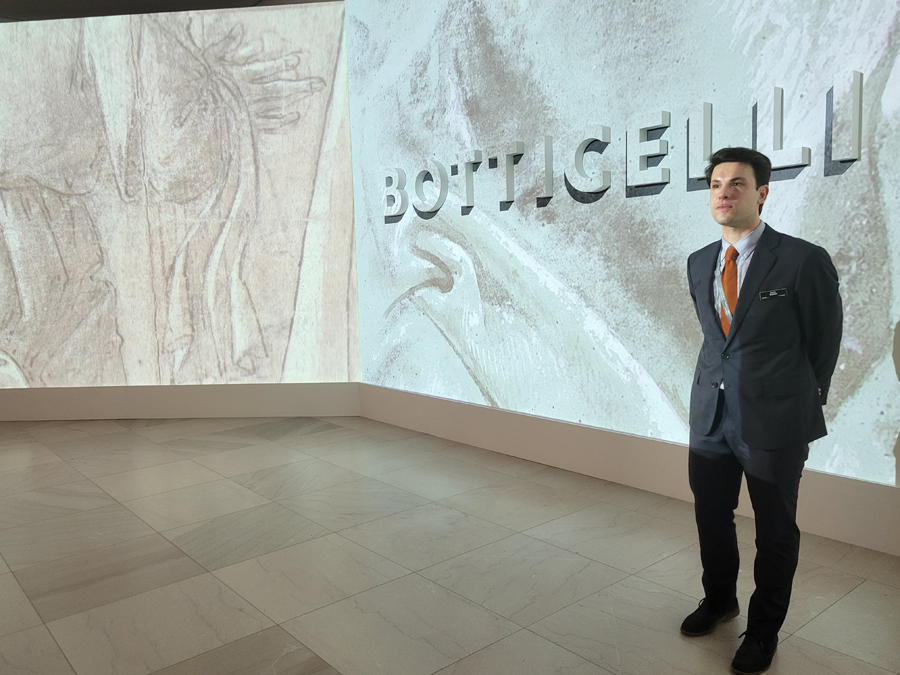 “We want to welcome audiences with these projections. It tunes the viewer’s eye to that level of detail – to the lines and the pictorial qualities of Botticelli’s drawings and design,” Rinaldi said. “It’s kind of like entering Botticelli’s mind through his graphic imagination.”