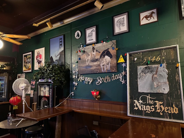 If you didn’t know any better, walking up Geary from 17th toward 18th Avenue, under the shade of large, bustling sidewalk trees, you’d think you were somewhere like downtown Sacramento or Chico. Then you see “The Nags Head,” a sign with a beautiful horse (nag), and the unique Dutch-Door entrance, and suddenly, you’re in a divey pub in England or Scotland. It’s only the constant hum of cars on Geary that reminds you you’re still in San Francisco.