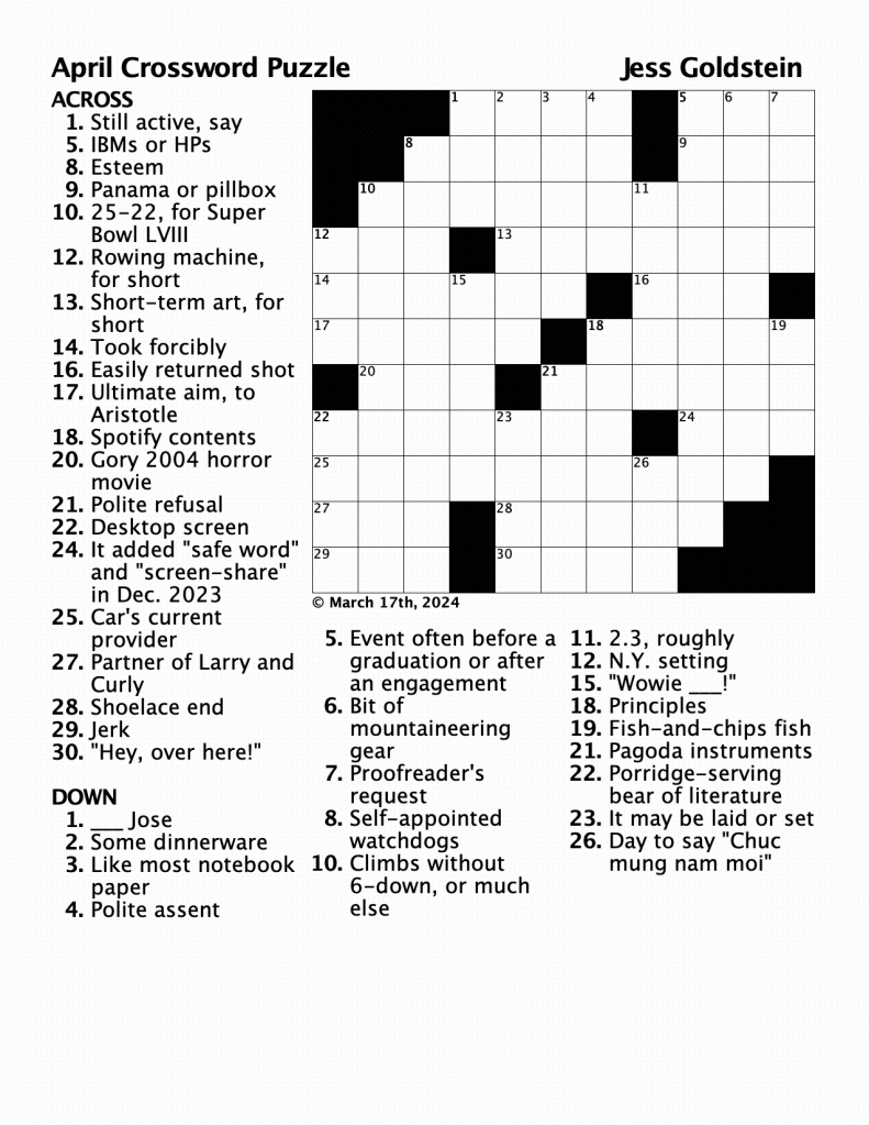 Tagged as: crossword puzzle, crossword solution, jess goldstein, Richmond District, Richmond Review