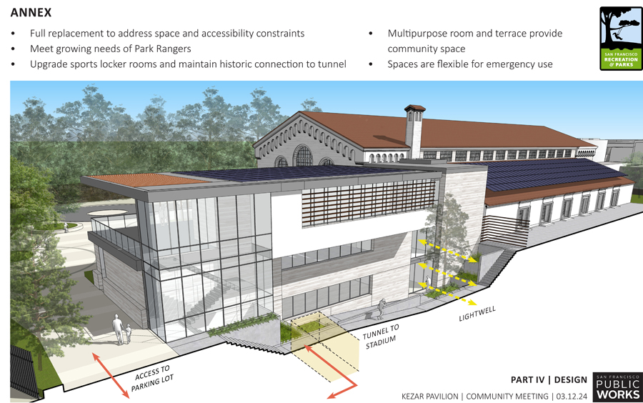 The new annex will serve as the headquarters for Rangers stationed at Golden Gate Park and house upgraded locker rooms while connecting to a historic tunnel which used to provide access to athletes going into Kezar Stadium.
