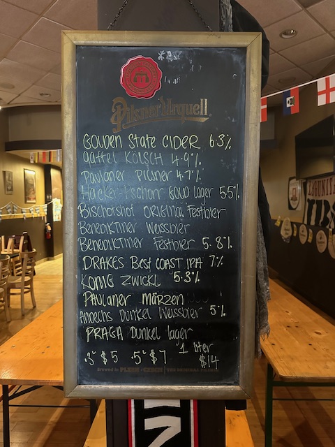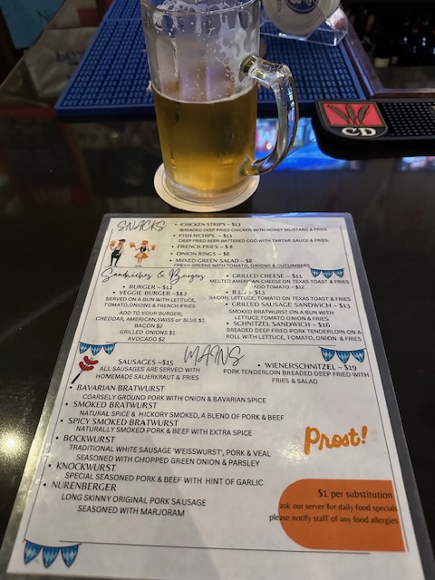 The half-liter beers are large enough to let you know you don’t need a full liter in one sitting. The beer can get warm and it’s just a lot of liquid upfront, for me anyway. In our case, we wanted to try a couple of different beers as well, so moving to the size below for the simple price of $5 made the most sense. It’s great that they allow the flexibility for three different sizes, depending on how you’re feeling. Hence the name Steins.