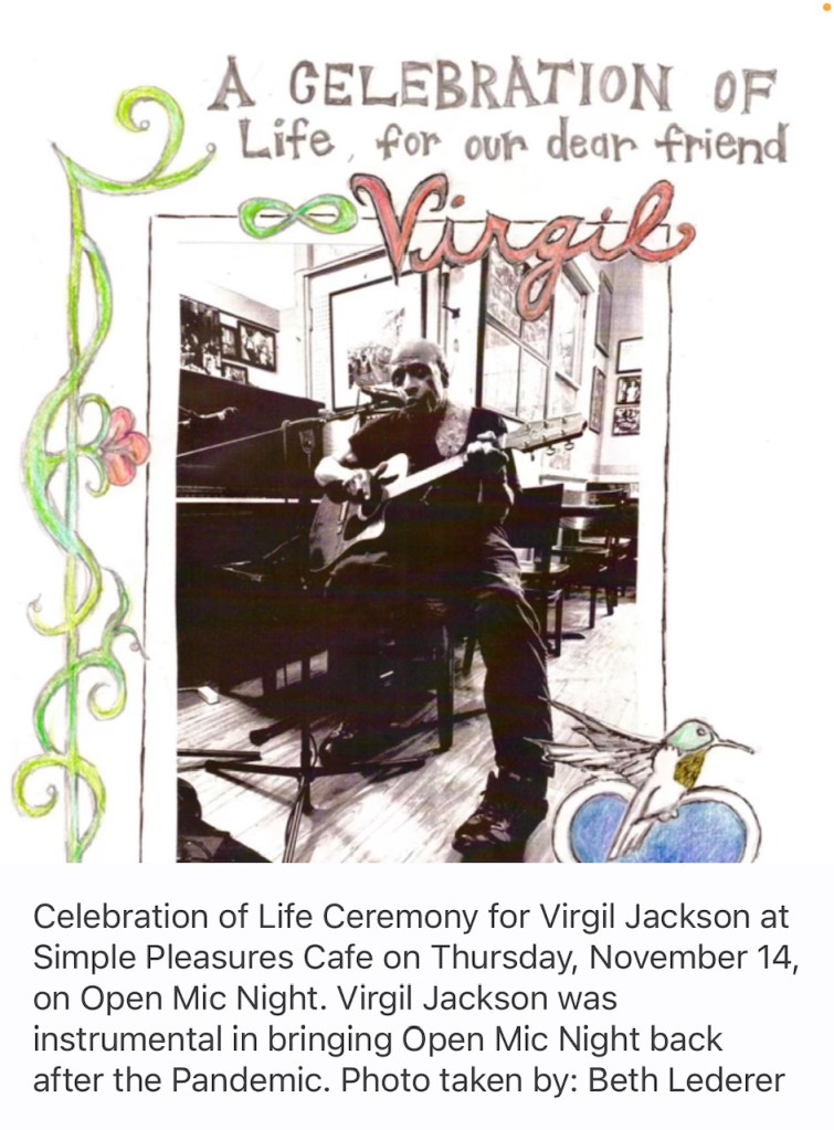 For Jackson, Simple Pleasures was like family – it was his sanctuary. So, it was just fitting for Simple Pleasures to throw him on open mic night, a celebration of life ceremony.