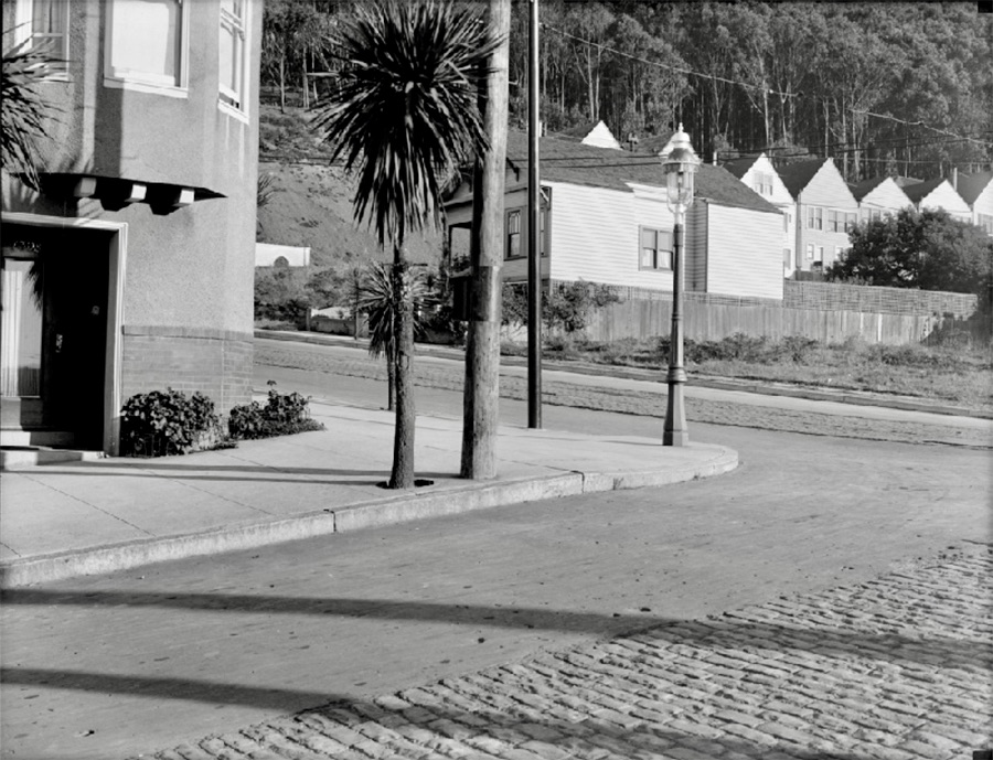 Above: Fifth and Parnassus avenues on Oct. 30, 1919, back in the days when cobblestone streets were plentiful. This view looking southeast shows the homes that were once on the site of the University of California, San Francisco (UCSF) Medical Center. Photo courtesy of a private collector/Western Neighborhoods Project/OpenSFHistory. Below: In this Feb. 5, 2025 photo, Fifth Avenue was under construction; city crews were replacing sewer pipes and other infrastructure. Meanwhile, UCSF continues its expansion projects. Photo by Michael Durand.