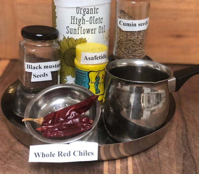 For the last step of vaghar: Heat the oil in a small saucepan or a metal measuring cup. Add the mustard seeds. When they start to pop, add the dry chili pieces. Then, moving quickly, add the optional pinch of hing. Stir and pour all of this smoky oil mixture into the pot of dal. You can dip the small pan or measuring cup right into the pot. Cover immediately. (Because you want the smoky heat to settle in the soup, not in the kitchen!) Turn off the heat and keep the pot covered for a few minutes. Uncover, stir and correct the seasoning by adding more tamarind sauce and/or salt if needed. Garnish the soup with cilantro. Serve the soup in large soup bowls with rice and/or roti. Place more chopped cilantro and wedges of lemon or lime for the diners if they wish to add them. Lastly, instruct the diners to remove the whole red chili pieces before they eat.