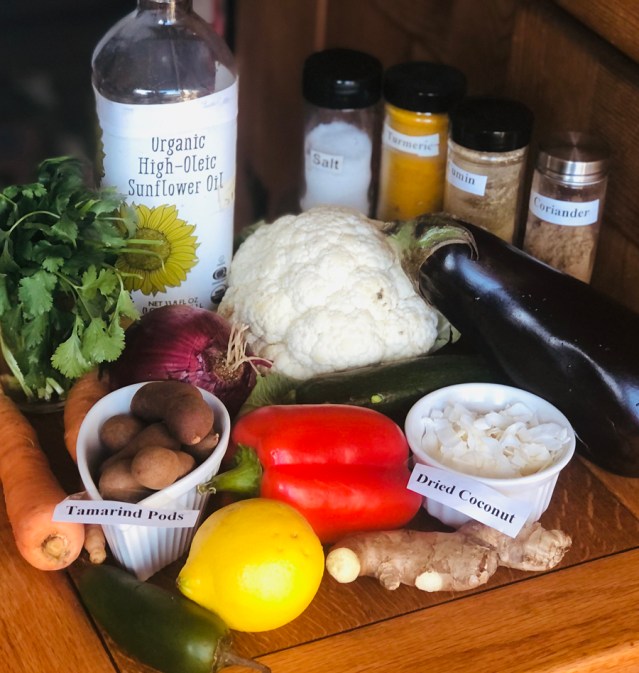 1 cup each: carrots, eggplant, celery and zucchini, cut into ¼” chunks