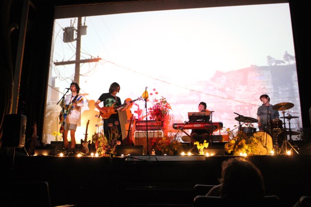 An orange spotlight beams on the theater screen. Instruments line the narrow stage, framed by a delicate arrangement of flowers. Groups of friends enter the theater and fill the well-worn velvet seats. The City feels impossibly small.