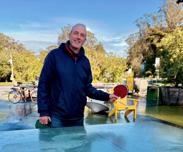 Tracy is passionate about ping pong. The “coffee table” in his Inner Richmond studio is a full-sized ping pong table. He was thrilled when the table arrived on JFK Promenade. He was even more thrilled when it caught on. Everyone loved playing – kids, seniors and tourists from around the world. Then, the balls and paddles started disappearing.