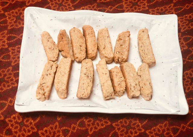 If you are looking for a small bite for an afternoon break or a light dessert, these lightly sweetened almond-filled biscottis are a healthy companion to your hot chocolate, chai or coffee.