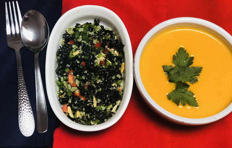 Serve the kale and quinoa salad with a bowl of creamy soup as a light meal. Or serve the salad as a first course to be followed by other entrees. Offer the rest of the dressing to the diners who may wish additional amount.