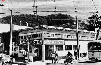 Below: Sutro Tower still looks down upon the City. The N-Judah has a more modern look compared to the green streetcars of old. The building on the corner that used to house a Jamba Juice is slated to be home to a Berkeley-based casual French restaurant Grégoire. The eatery is famous for its crispy chicken sandwiches and fried potato puffs. It is scheduled to open this fall. Photo by Michael Durand.