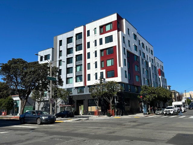 The old mortuary was quite drab. I like the new building and its mural which can be see looking east along Geary. I think increasing the amount of limited affordable housing in the district is so welcome. I think they should have an open house and invite the community to view inside the building/space!