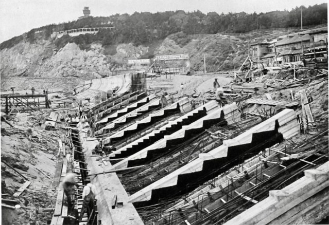 Below: A little wider view shows the sea wall, but no sign of the steps which are now buried under the sand. There is also no sign of the spray-painted graffiti in the “then” photo. Photo by Audrey Jonas.